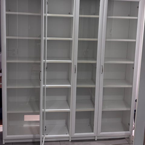 Kirjahylly on suunniteltu ja teetetty mittojen mukaan työhuoneen kirjahyllyksi. Hyllyssä on useita avoimia lokeroita, kaksi laatikkoa ja neljä ovellista säilytystilaa. Sopii kirjojen, koriste-esineiden ja muiden tavaroiden järjestämiseen.