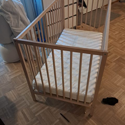 Huom: Välipohjasta on yksi pinna katkennut, mutta se ei haittaa nukkumista. Katkennut pinna näkyy viimeisessä kuvassa.