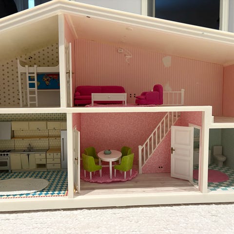 Myydään kolme kerroksinen Lundby nukkekoti ja talvipiha. Kaikki kuvissa nukkekodissa olevat tavarat ja nuket kuuluu kauppaan. Osassa tavaroita on puutteita, mutta hyvin vähän. Esim nojatuolin käsinojasta lohjennut palanen. Sähkö valmius on, mutta muuntajaa ei ole, eikä ole meillä koskaan ollut käytössä, mutta esim hellassa ja keittiön lavuaaripöydässä on sähkö valmius. Vain nouto.
