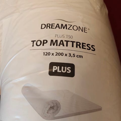 Dream Zone petauspatja. Siistissä kunnossa, reunassa yksi kahvitahra. Päällinen on pestävä.