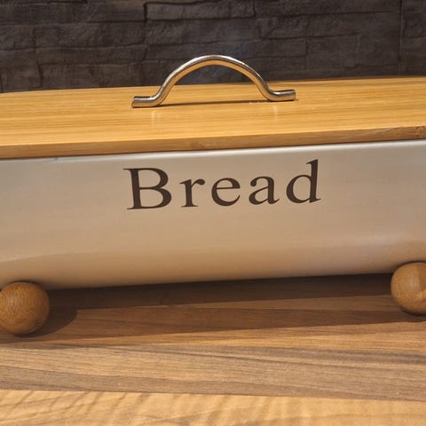 Käytetty, siistikuntoinen laatikko leipien, ja miksipä ei muuhunkin säilytykseen.
