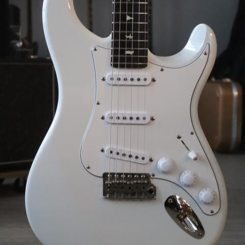 Erittäin siistikuntoinen ja laadukas 2018 valmistunut (USA) PRS John Mayer Silver Sky Frost sähkökitara alkuperäisellä PRS gig bagilla.