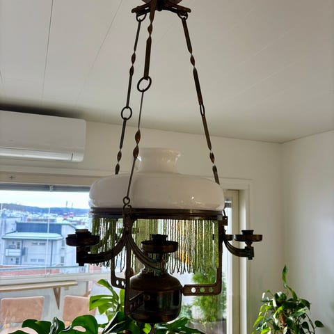 Tämä Jugend kattovalo on todellinen löytö kaikille antiikin ja designin ystäville. Valaisin on kaunis, vanha ja täysin ehjä. Sen elegantit linjat ja taidokkaasti koristellut yksityiskohdat tekevät siitä todellisen katseenkääntäjän kodin sisustuksessa. Tämä uniikki valo luo tunnelmallisen ja nostalgisen ilmapiirin mihin tahansa huoneeseen. Olipa kotisi sitten moderni tai perinteinen, tämä Jugend kattovalo sopii siihen täydellisesti. Hanki tämä arvokas valaisin kruunaamaan kodin ilme ja luo upeaa tunnelmaa jokaiseen hetkeen.