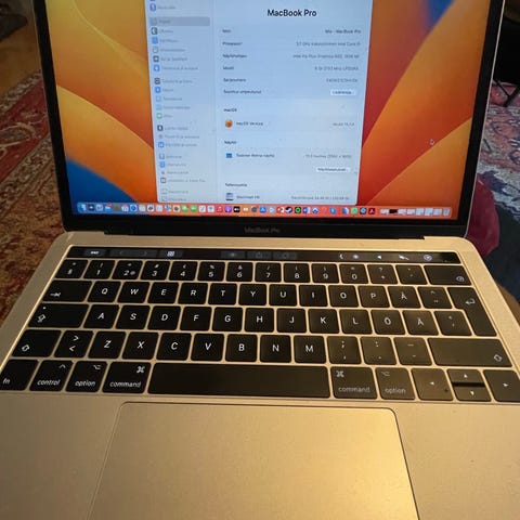Macbook Pro 13" 8/255 GB Space Gray. Siisti kone, ei jälkiä. Laturi ja laatikko. Akku suositteler huoltoa, toimii noin tunnin ilman laturia.