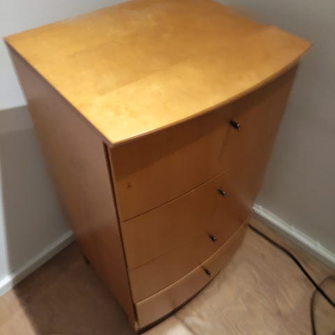 Mäntypuinen lipasto. Laatikot ehjät ja puhtaat. Pihka tullut hieman läpi maalipinnasta. Vain nouto. Maksu käteisellä.