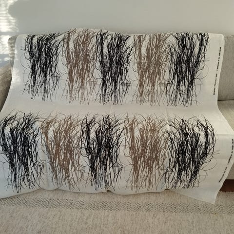 Uusi, käyttämätön, musta-valkoinen 100% puuvillakangas Maija Isolan "Kivet"kuosilla.