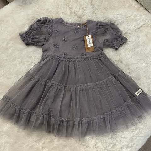 Vaaleanlila kaunis mekko, ollut vain muutaman kerran käytössä. Yläosassa kirjailtuja kukkia ja takana kolme nappia.