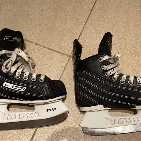 Lasten Bauer-hokkarit koko y11. Koko vastaa EU:n kokoa 29-29,5. Terät hyvässä kunnossa; tämä talvi menee ilman uutta teroitusta.