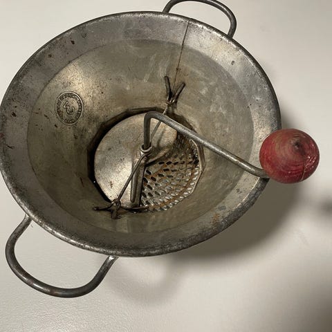 Moulin-merkkinen käsikäyttöinen sosemylly. Myllyssä on 3 erilaista terää.