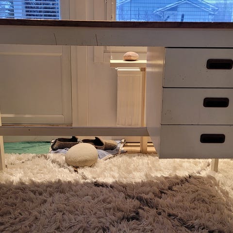 Ihana työpöytä, jossa kaksi pientä vetolaatikkoa. Vanha, joten on kulumaa ja patinaa ja elämän jälkiä. Tämmöisenä toimi itsellä työpöytänä useita vuosia, mutta uuden asunnon myötä ei sopinut enää pienempään työhuoneeseen. Eli toimii sellaisenaan tai joku voi kunnostaa uuteen uskoon.