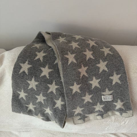 Villahuivi Gant tähti logolla. Huivin pituus noin 170cm, lev. 25cm. Kunto moitteeton.