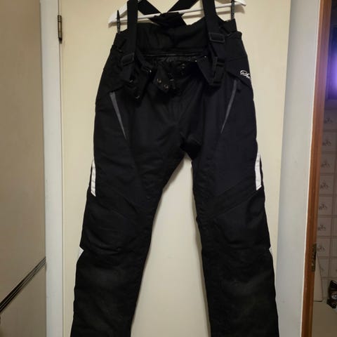 Hyväkuntoiset, ehjät naisten Büse ajouhousut. Vyötärö säädettävissä, leveys n. 53cm. Mukava malli, mukana polvisuojat sekä vedenpitävät sisähousut. Huom! Myynnissä myös samanlaiset koon 44 housut.