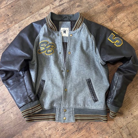 Tämä XL-kokoinen Vintage DeLong Varsity -takki on klassinen miesten vaatekappale, jossa on yksivärinen sininen väri ja painonappikiinnitys. Yhdysvalloissa valmistetussa keskipaksussa takissa on normaali istuvuus ja ajaton yliopistotyyli, joten se sopii täydellisesti tuomaan ripauksen retro-charmia mihin tahansa asuun. Kevyen muotoilunsa ansiosta sitä voi käyttää mukavasti kaikkina vuodenaikoina.