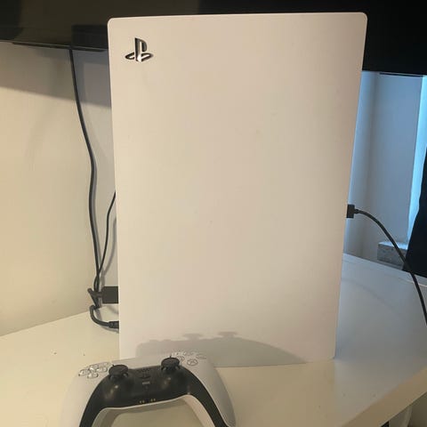Siistikuntoinen, hienosti toimiva pinkki Playstation 5 digikonsoli, sekä Dualsense ohjain. 825gt tallennustilaa.