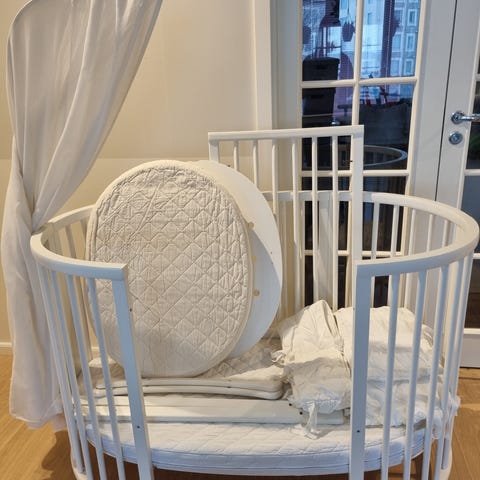 Vanhempaa mallia (muistaakseni V2) Sleepi Mini pinnasänky ja patja, reunapehmuste, verhotanko ja verho. Lisäksi mukana jatkopalat isompaan pinnasänkyyn sekä isompi patja, kaksi muotolakanaa isompaan patjaan (valkoisia). Pieniä kolhuja, kaikki yritetty kuvata. Lisäksi isommassa patjassa pieni tahra joka ei pesussa lähde, siitä myös kuva. Nouto Helsingin Myllypurosta, puretaan osiin ennen noutoa. Mukana myös ohjekirja.