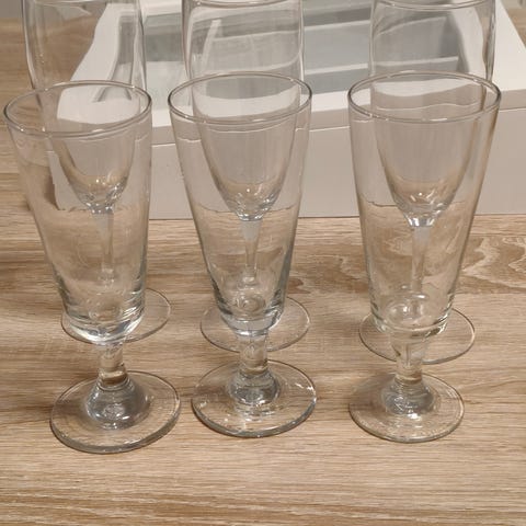 6kpl shampanja-, cocktail-, drinkki-laseiksi, tai vaikka jälkiruokamaljoiksi. Halkaisija n.9cm, korkeus n.11cm.
