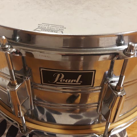 Myyn pois nurkista lojumasta tällaisen Pearl Forum sarjan puusnaren. Yläkalvona Evans Reverse Power Dot ja alapuolella Evans Snareside 300. Viisteet kunnossa. Lugeissa ja vanteissa pintaruostetta.
