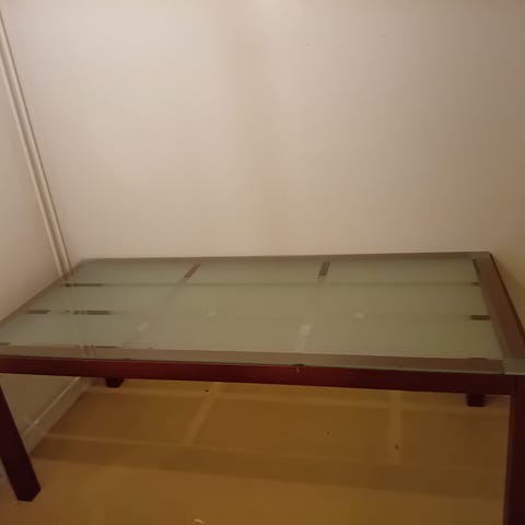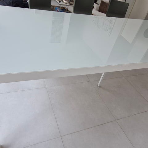 Myydään muuton tieltä pois iso valkonen ruokapöytä, jossa päällä pidetty aina mittojen mukaan teetettyjä karkaistua lasia. Pöytä on tukeva lankkupöytä.