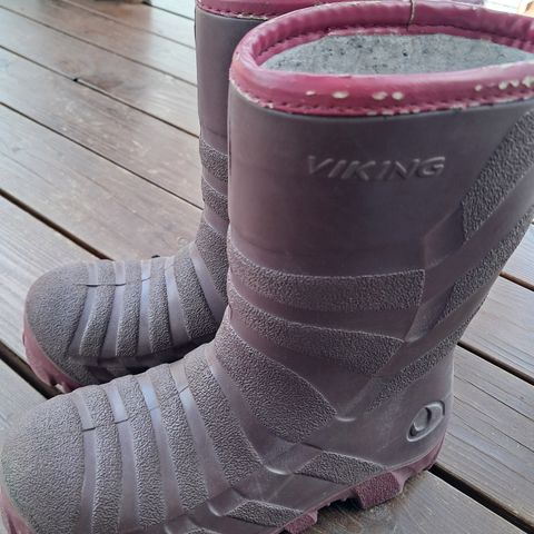 Viking Ultra vuorelliset saappaat. Koko 30. Yläreunasta kuluneet, kuten kuvasta näkyy, mutta ajoivat asiansa eli pitivät lapsen jalat kuivana.
