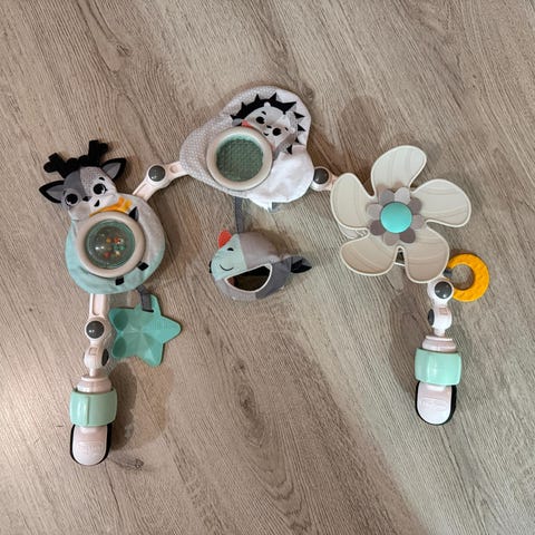 Mukana neljä lelua joissa rapiseva, kilisevä ja vinkulelu.