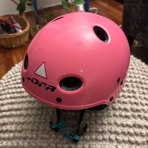 Jofa 415 kypärä valkoisena. Kypärässä on useita ilmanvaihtoaukkoja ja säädettävä leukahihna. Sopii suojaamaan päätä erilaisissa urheilulajeissa tai vapaa-ajan aktiviteeteissa.