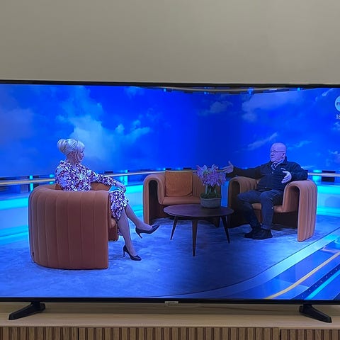 Samsung AU7000 UHD-televisio, 55 tuuman näyttö. Televisio tarjoaa Ultra HD -tarkkuuden ja HDMI-liitännät. Väri musta.