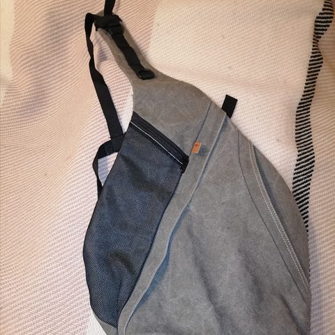 Pienehkö ja yksinkertainen rullasulkuinen reppu joka käy myös ihan vain säkkinä. Myydään uutena ja käyttämättömänä. Itse ompelemani.