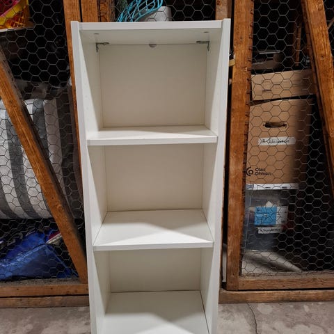 Myydään yksittäinen metallinen Umbra Conceal kirjahylly. Kirjapino peittää hyllyn/tason kokonaisuudessaan, jolloin kirjat näyttävät leijuvan. Hieno ja toimiva! Pientä kulumaa ja naarmua maalipinnassa (katso kuvat), yleisilme silti hyvä ja kaikki jää tosiaan piiloon.