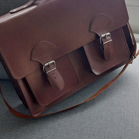 Hyväkuntoinen nahkainen unisex-laukku, jossa on mukavat kantokahvat ja olkahihna. Kotimainen brändi Jouni Exclusive.