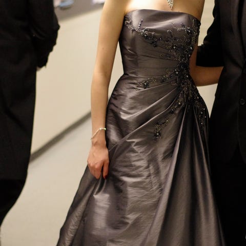 Ihana tumman sininen iltapuku, tanssittu yhdet vanhojen tanssit.