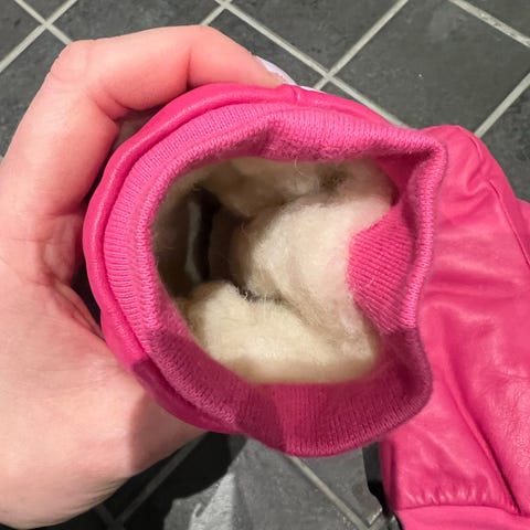 Ehjät ja lämpimät talvirukkaset nahkaa, sisällä karvavuori. Sopivat 3-5 -vuotiaalle eli noin 104-110cm kokoiselle. Rukkasten väri tumma viininpunainen.