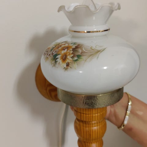 Tyyliltään vintage- tai art deco -henkinen. Valaisimessa on kiiltävä kultasävyinen metalliosa ja mattapintainen lasivarjostin, joka pehmentää valoa.