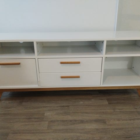 Annetaan valkoinen Vepsäläisen tv-taso. Mitat 200×58×40 cm. Useita kolhuja, mutta muuten hyväkuntoinen ja vankka. Vain nouto, mieluiten joko 24. tai 25.1.