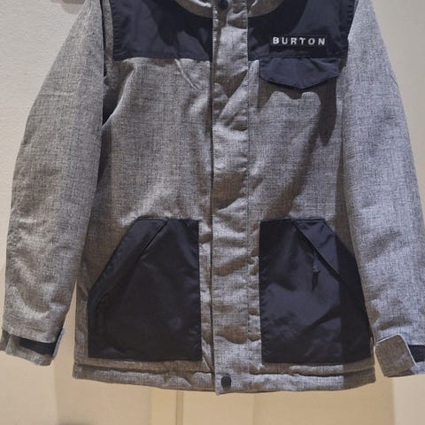 Hyväkuntoinen Burtonin lautailutakki lumilukoilla ja suljettavilla kainalotuuletusaukoilla ja tokihan se on vedenpitävä.