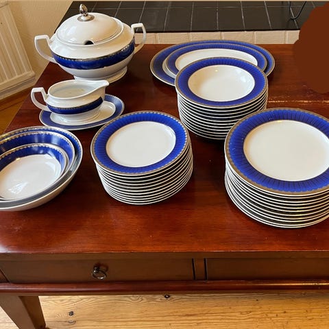 Tämä on täydellinen astiasto kokonaisuus juhla pöytä tarjoomisiin tai näyttävä setti vitriini hylly päälle laatuastioiden keräilijälle.