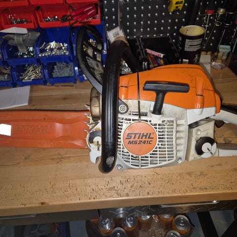 Stihl MS241- kahvanlämppäreillä ja lämmitetyllä kaasuttimella purettuna, leikannut kunnolla kiinni kun on ajettu ilman öljyä bensan joukossa. Magneettiventtiili melko uusi.