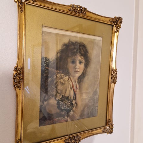 Ajan patinaa, ilmeisesti vanha printtikuva, kehykset alkuperäiset samoin kuva. Noin 60-luvulta. Saa tutustua ennen lopullista ostopäätöstä.