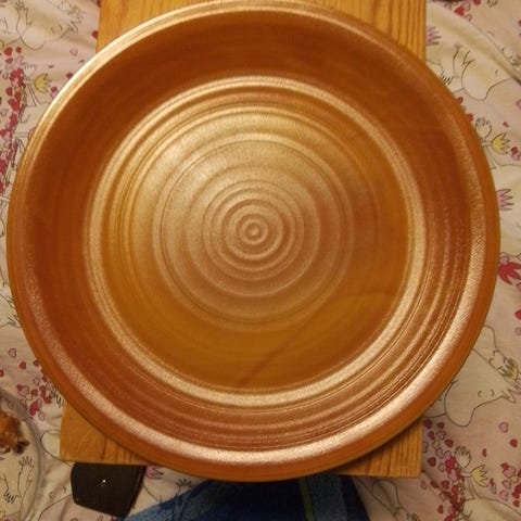 Myydään oranssi-ruskea vintage Arcopal France Volcan lasinen tarjoilulautanen/kakkulautanen, halkaisija 32cm.