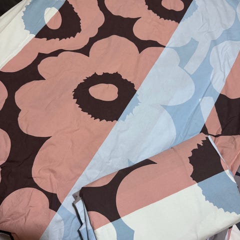 Ostetaan hyväkuntoiset kuvanmukaiset Marimekon Unikko pussilakana+tyynyliina. Tarjoa!