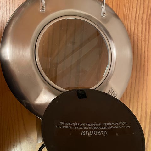 Toimiva pöytävalaisin suurennuslasilla, jäänyt aika vähälle käytölle. Lampussa on oma painava jalka eli ei tarvitse kiinnittää pöytään. Polttimo on normi E27 kantainen. Vaihdettu joskus LED polttimoksi, mutta saatat haluta vaihtaa tehokkaampaan.