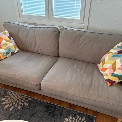 Ikean Backsälen 3:n istuttava valkoinen sohva. Irtopäälliset helposti pestävät, hyvässä kunnossa. Ei kotieläimiä tai tupakointia taloudessa. Ei myydä enään Ikeassa, alkuperäinen hinta 600€. Pari vuotta vanha. Noudettava. Saa tarjota 😊
