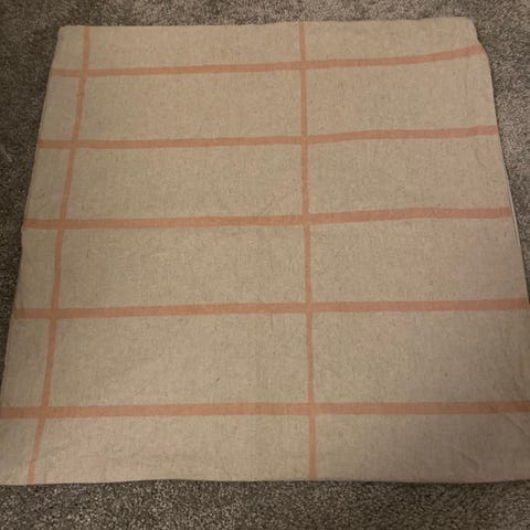 Marimekko itse tehty tyynynpäällinen, koko 46x47cm. Hyväkuntoinen, siististi tehty, pohjaväri ei enää ihan alkuperäisen valkoinen.