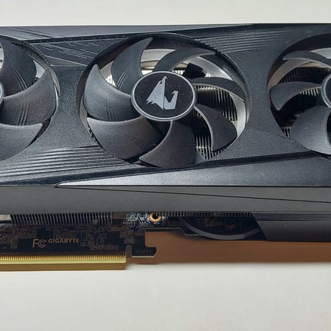 Lenovo Legion T5 26AMR5 pakettikoneesta otettu irti oleva näytönohjain. Kuvassa näkyvän pidikkeen saa tietenkin irti.👍