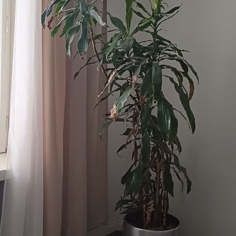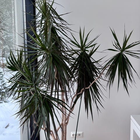 Myydään kotiini liian suureksi kasvanut traakkipuu. Kasvin korkeus on ruukun pohjasta n. 148 cm; se myydään suuressa saviruukussa, jonka halkaisija on n. 30 cm.