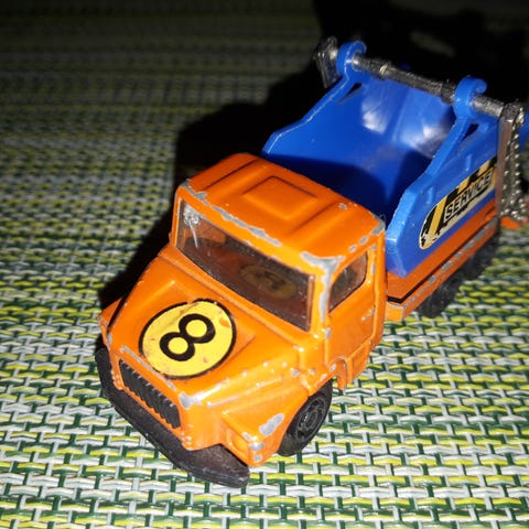 Auto on ikäisekseen ja leikkimäärään nähden hyvässä kunnossa. Usein kadoksissa oleva musta kattokin on hienosti tallessa! Pikku naarmuja ja kuvissakin näkyvää kulumaa on siellä täällä. Pyörät pyörivät hyvin. Lisäksi autoa on varmasti kolaroitu satoja ellei tuhansia kertoja sekä varmasti ajettu jyrkänteeltäkin alas rotkoon monta monituista kertaa. Auton ikäarvio liikkuu ainakin 40-50 vuoden välillä.