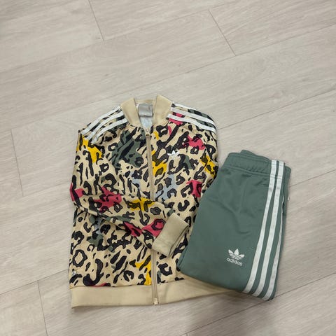 Pinkki, musta Adidaksen verkkapuku. Koko 152. Ehjät ja siistit. Takkia on käytetty vähän. Housuissa on vähän käytönjäljiltä nukkaa. Vyötäröllä nauhakiristys. Resori lahkeessa.