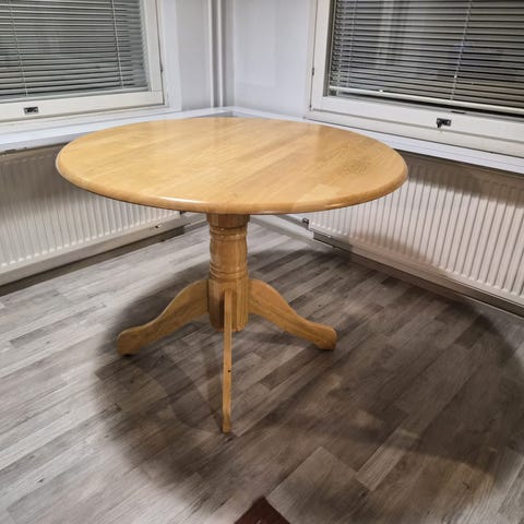 Ostetaan pyöreä tai nelikulmainen pieni pöytä. Halkaisija max 80 cm. Värit puu ja/tai musta. Voi myös tarjota tuoleja 2-3 kpl. Tarjoa kuvien ja mittojen kanssa😊
