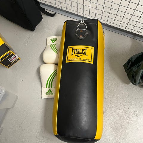 Olympic Fitness nyrkkeilysäkki ketjulla ja hanskat.