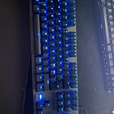 Otsikon mukainen täysin ehjä langaton mekaaninen pelinäppäimistö eteenpäin pois uuden tieltä.
