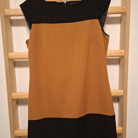 Kokolapussa lukee 38 mutta menee tarvittaessa myös 36 koolle. Noi valkoset pilkut vähä niiden väri on kellertyny pesus. Kaunis classy timeless / ajaton mekko. Kuvissa olen s kokoinen. Rusetin/vyön voi kiinnittää joko eteen tai taakse. Materiaali: satiini